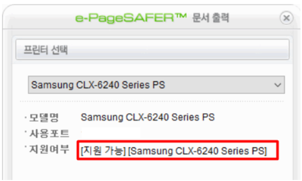 'Samsung CLX~'로 시작하는 가상의 프린터가 생겼는데요, 이 프린터를 선택하면 지원여부에 '[지원 가능]' 이라는 메세지가 출력됩니다.